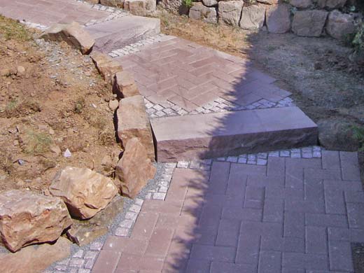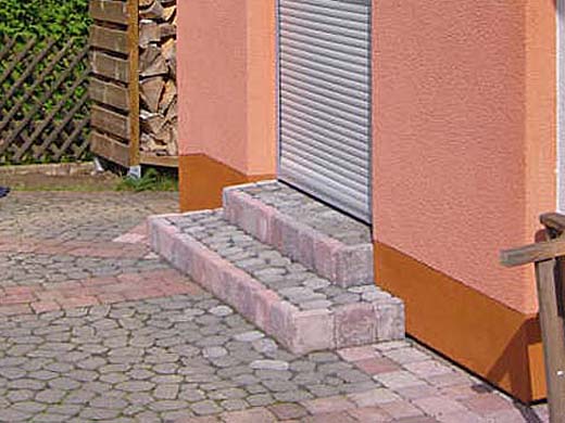 | Diese Stellstufen wurden nachträglch, passend zum vorhandenen Pflasterbelag, erstellt. |