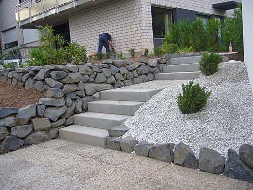 | Eine Kombination aus Rampe und Treppe - so kann man auch mit der Schubkarre leichter arbeiten. |